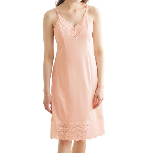 花柄レース使いラウンドスリップ 吸汗 速乾 身生地 セシール Cecile